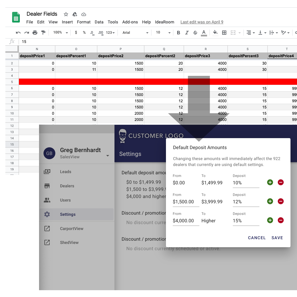 Making it possible to change the default deposit amounts early in the client’s setup, but later ensuring that the client does not unknowingly change it and mess up prices for hundreds of dealers. I suggested an extra warning message with very specific wording showing how many dealers would be affected.